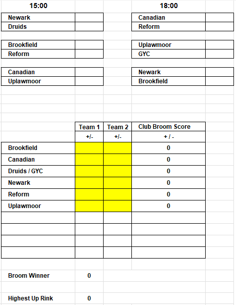 Ladies Broom The 2026 Ladies Broom will be held at Greenacres on Wednesday 14th January Session times will be 3pm and 6pm Draw